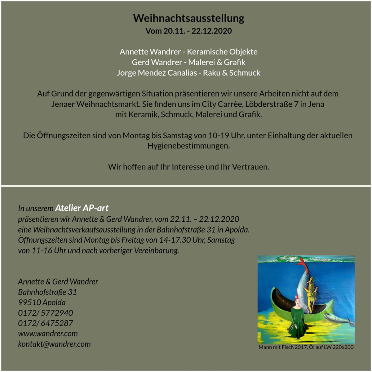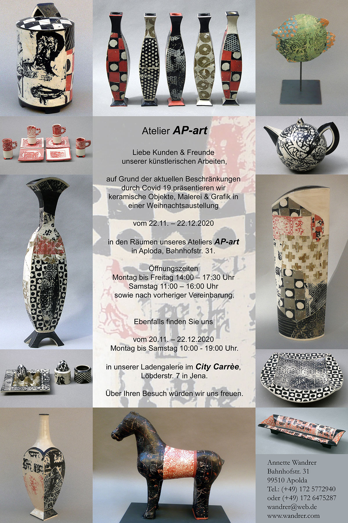 Auf Grund der aktuellen Beschränkungen durch Covid-19 präsentieren wir keramische Objekte sowie Malerei und Grafik in zwei Verkaufsausstellungen – wir freuen uns auf Ihren Besuch!